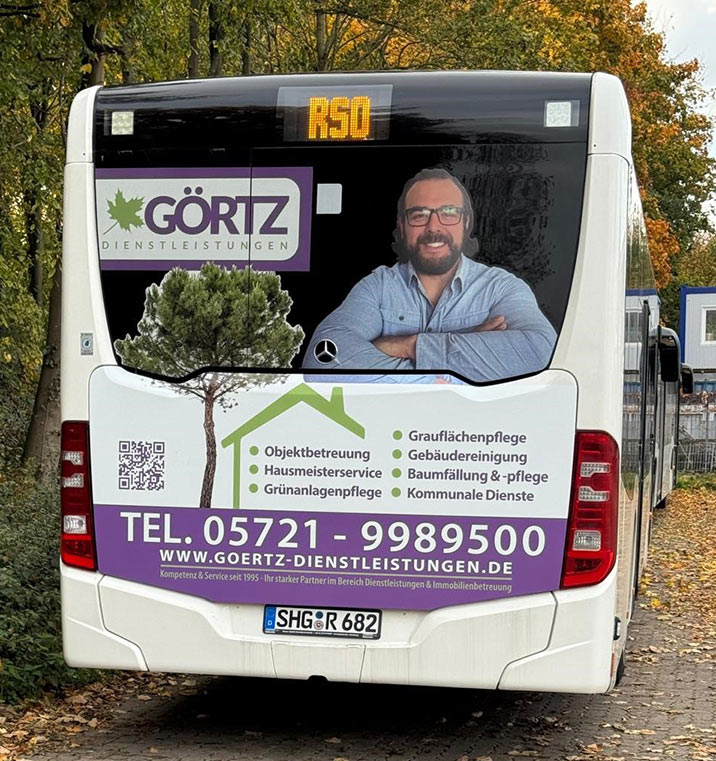 Buswerbung leicht gemacht – wir bringen Ihre Marke auf die Straße! Setzen Sie auf maximale Sichtbarkeit: Wir übernehmen für Sie die komplette Abwicklung – von der kreativen Gestaltung über die Produktion bis hin zur Organisation der Busflächen-Miete. So erhalten Sie alles aus einer Hand und können sich entspannt zurücklehnen, während Ihre Botschaft durch die Stadt fährt. Gerne erstellen wir Ihnen ein individuelles Angebot.